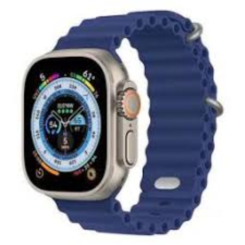The image showcases the TLTM series AP-X11 Ultra Smart Watch. The packaging highlights the watch's design and features, including a digital display that shows the time. The set includes the watch itself and seven interchangeable straps in various colors: black, navy blue, orange, pink, white, and two shades of gray. Additionally, the package contains a charging cable, indicating that the watch is rechargeable. The design appears to cater to users who appreciate versatility in style, allowing for customization based on personal preference.